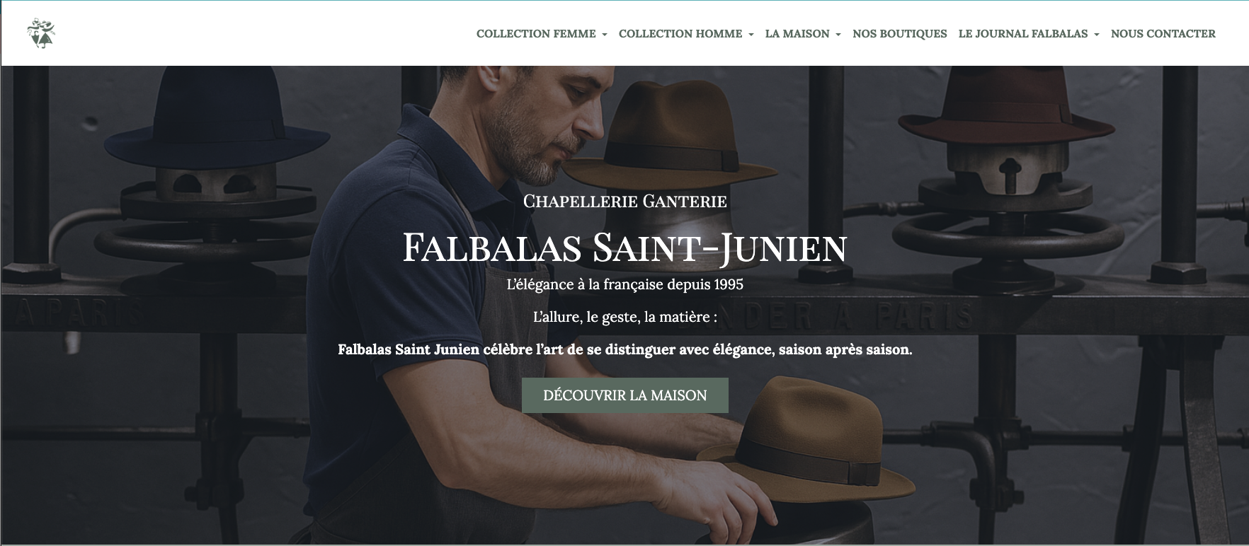 Depuis près de 30 ans, Falbalas Saint Junien accompagne ses clients dans le choix de chapeaux et de gants issus des plus grandes maisons. Aujourd’hui, nous sommes heureux de dévoiler notre nouveau site vitrine : un espace digital pensé pour être clair, moderne et inspirant.